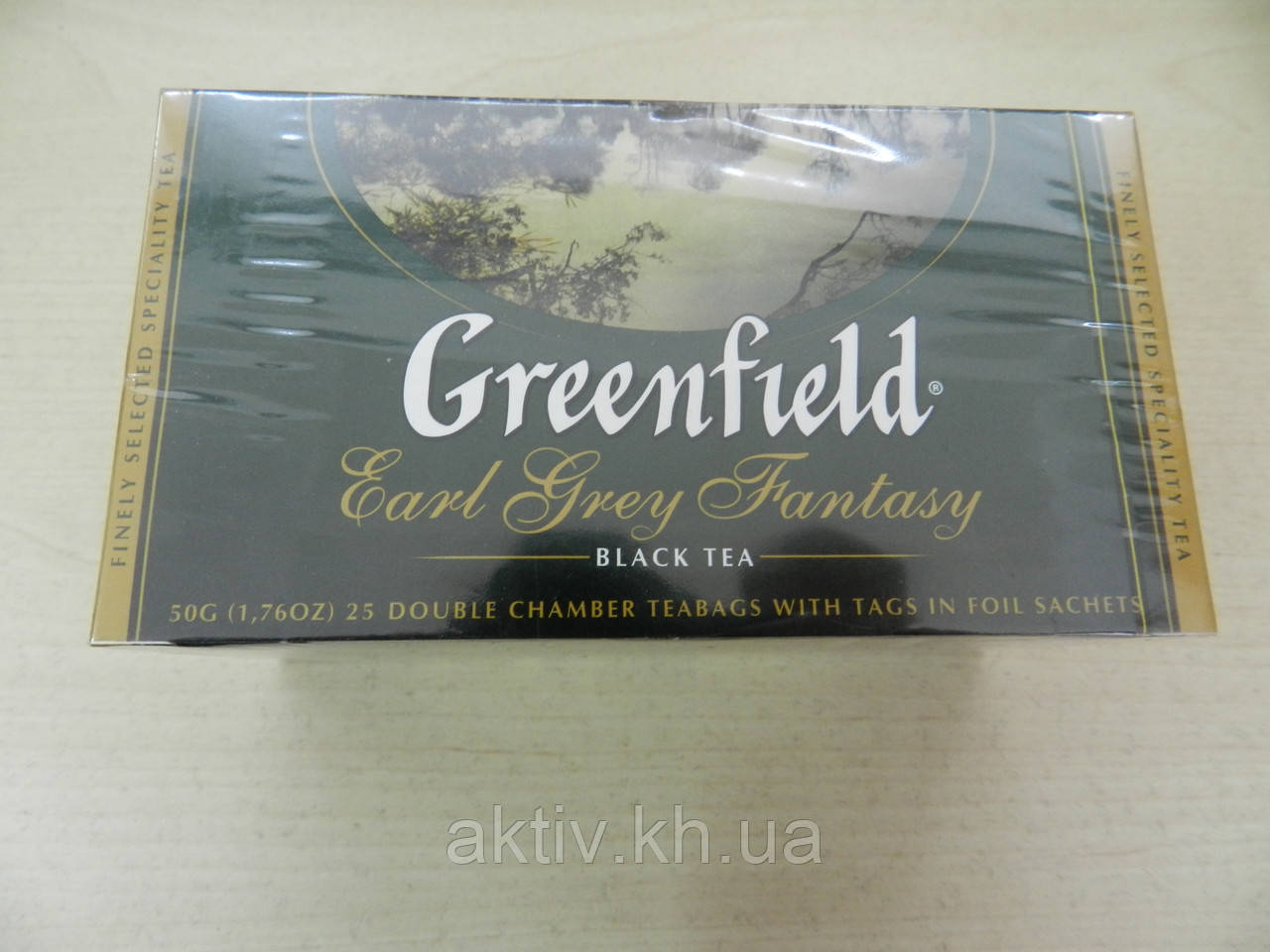 Чай чорний цейлонський байховий з ароматом бергамоту та цедрою цитрусових пакетований "Greenfield Earl Grey Fantasy" 25 пакетиків в індивідуальному пакованні з ниткою.